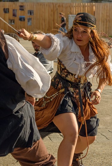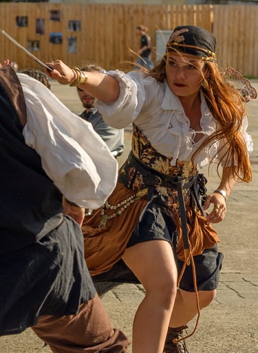 Au MOYEN-ÂGE ou au temps des PIRATES, les artistes déambulent au CONTACT DU PUBLIC, intégrant le spect'acteur au cœur même de l'histoire.