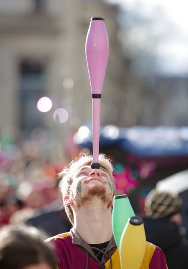 Ce spectacle en déambulation offre jonglerie, combats d'escrime, contes, danses et chants.