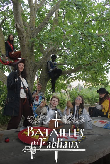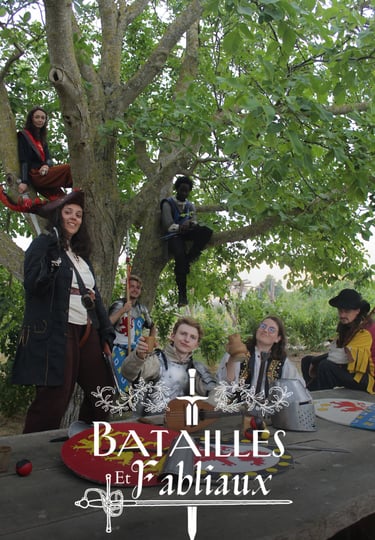 Sur la place publique, devant le décor tout juste monté, les baladins bretteurs vous présentent : Batailles et Fabliaux !