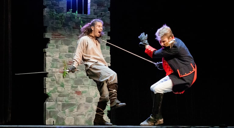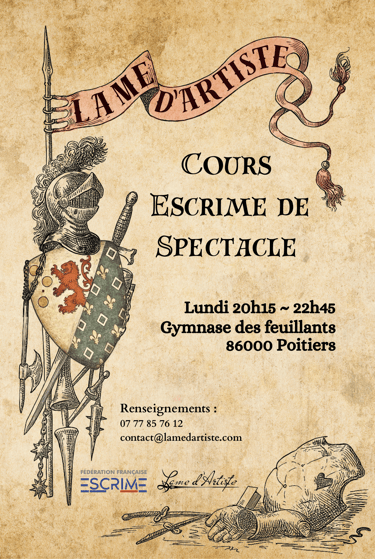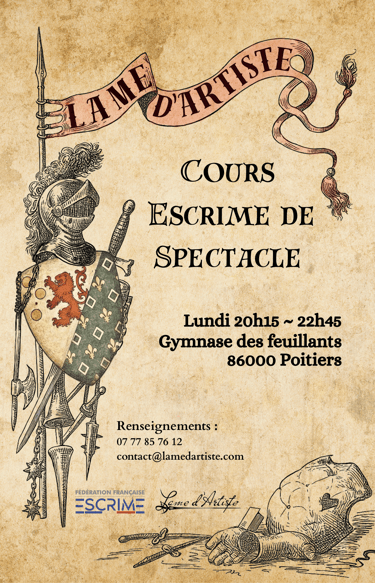 A la manière des chevaliers, des mousquetaires ou des pirates, venez apprendre à manier l'épée ! En participant aux cours d'escrime de spectacle tout au long de l'année, vous mêlerez théâtre, cascades ainsi que jeux d’épées afin de réaliser des combats épiques inspirés des traités d'escrime ancienne et des plus grands spectacles et films de cape et d'épée.